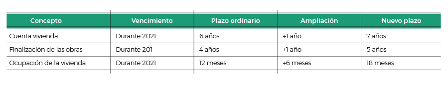 Se modifican los plazos relacionados con incentivos vinculados a la vivienda habitual. En el siguiente cuadro se resume cómo quedan estos plazos:
