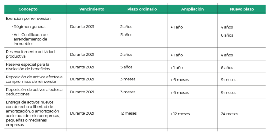 a. Ampliación de plazos relativos a determinados incentivos fiscales