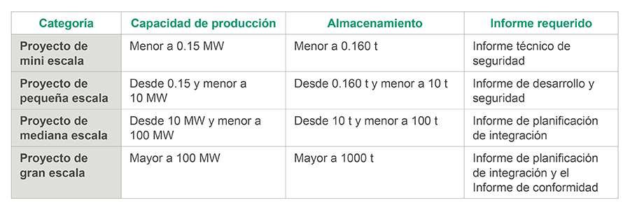- Se precisa una determinada clasificación de los proyectos de hidrógeno verde en función de sus capacidades de producción o almacenamiento, junto a los informes que deberán ser presentados de manera obligatoria según el tipo de proyecto: